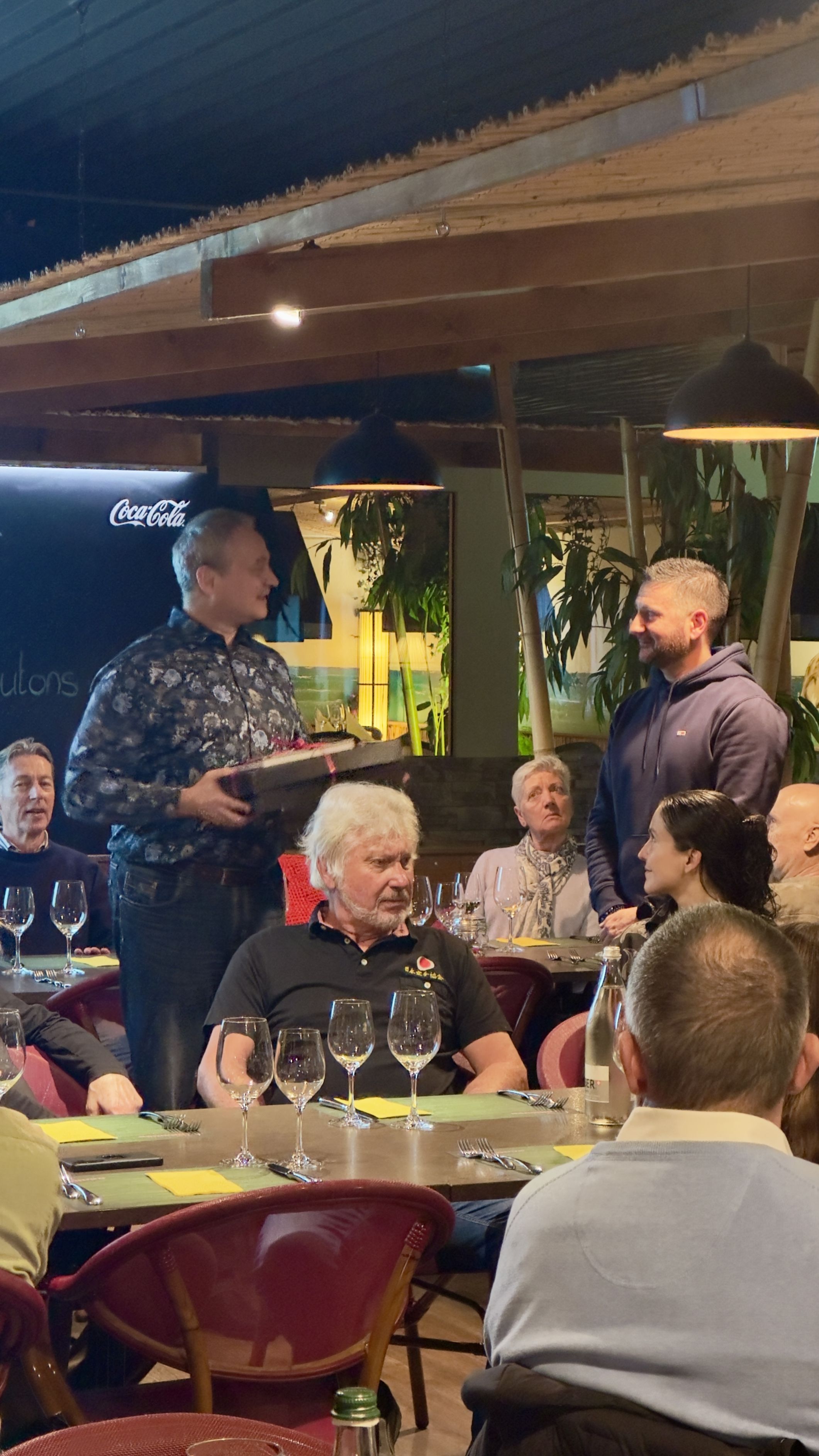 Der Apéro und das Abendessen fand im Bowlingcenter Trimbach statt. Bevor das dreigängige Menü serviert wurde, bedankte sich Marc Meienberger bei den Organisatoren, Ben Wäber und Sven Baur, und überreichte beiden ein kleines Präsent.